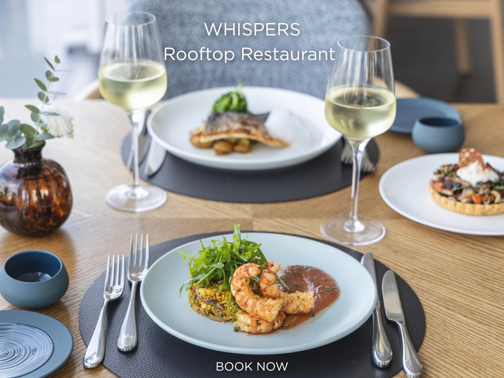 Amalia Hotel Athens features a superb restaurant on the 7th floor, WHISPERS Restaurant Bar, offering a gastronomic experience with enchanting Mediterranean flavours crafted by executive Chef Angelos Kondes.